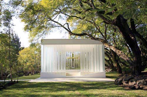 В сопровождении жены за два с половиной года он объездил многочисленные рынки Европы и в конце концов собрал из ненужных частей старых церквей свою собственную маленькую часовню, в которой есть алтарь, купель и даже приобретенный на испанском рынке гобелен с изображением тайной вечери.